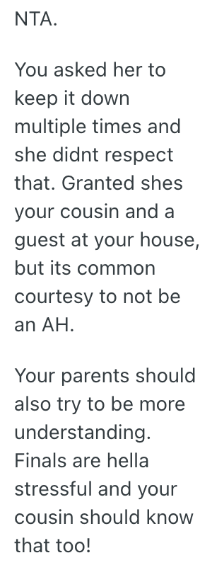 I feel bad because Laura’s internship is only about 2 more weeks, and yes, I didn’t warn her about turning off the WiFi. On the other hand, I’m trying for a scholarship, and I literally can’t focus or go to sleep with the late-night noise.