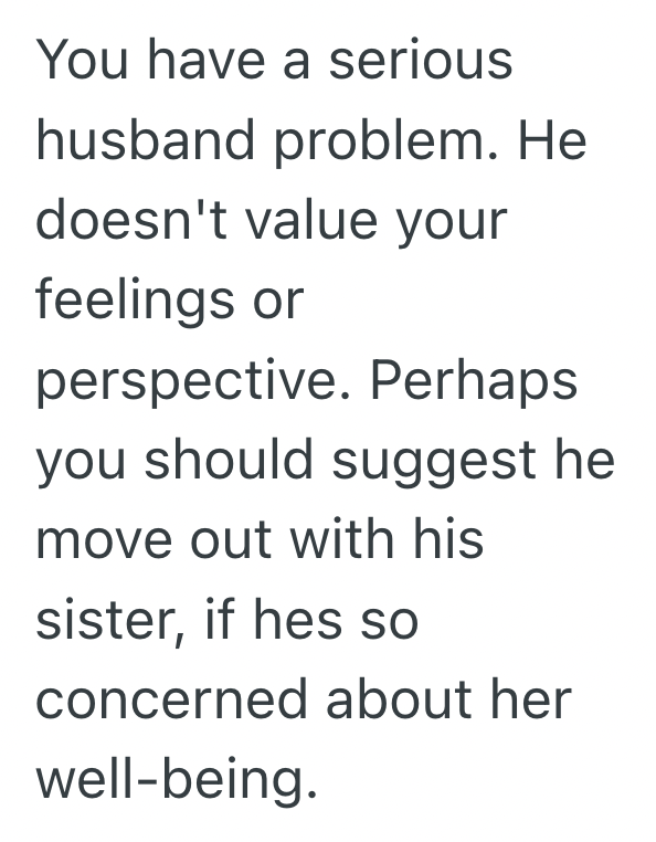 I (37M) and my husband (34M) have been married for 16 years, and dating for 18. He has an older sister (42F) who has been living with us for the past six months.