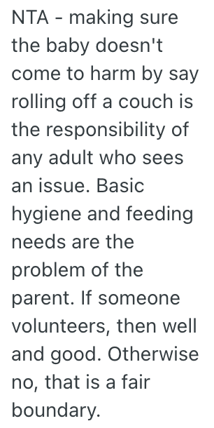 Not trying to make anyone feel bad – but I’ve had 3 kids and I always took responsibility -I watched them, I packed for them, and I changed them. I’m not looking to be a secondary parent for this kid.”