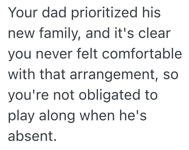 I know my dad’s disappointed in me but if he wanted me and my brother to be closer to his new family he should be around.