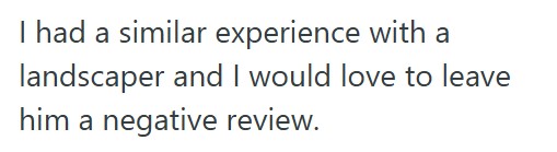 The landscaper lamented not having a chance to fix their shoddy work before months had passed and I lamented them ignoring my communications about the project being subpar in the first place.