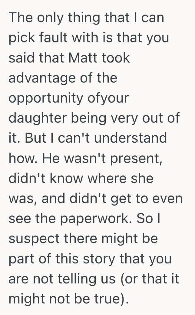 Perhaps this mother may be projecting some of her own views onto Matt.