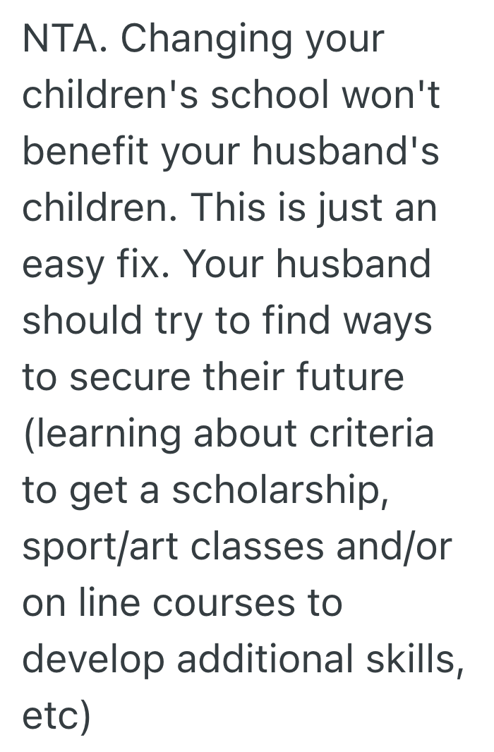 AITAH for refusing to change my children’s school for husband after his ex wife lost her high paying job