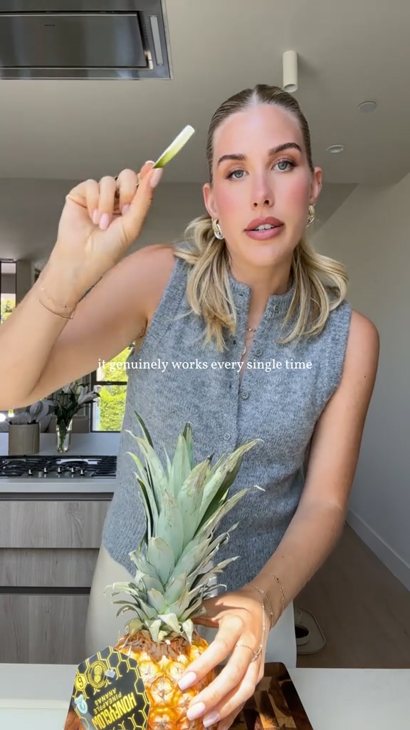 “I don’t know if you guys also need cutting tips, but I’m so excited how beautiful that pineapple is. Smells even better. It truly smells like summer in here.”