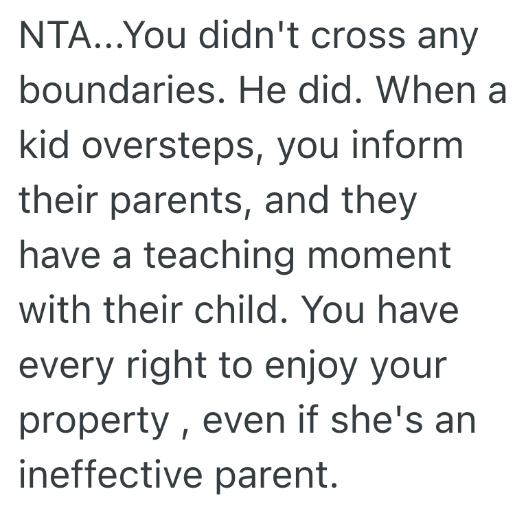 I get it, he’s a kid. I didn’t yell, I didn’t shame him, and I even gave the stuff back. But I’m not thrilled about my yard being turned into a sandbox and getting insulted for not being okay with it.