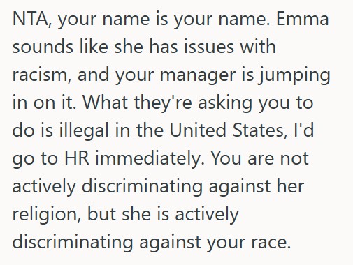 Coworker Wanted Her To Change Her Name Because She Thought That It Was Disrespectful To Her Religion, But She Refused To Give In