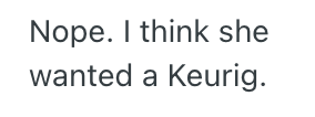 Lastly, this person thinks the wife is the one who wants a coffee maker.