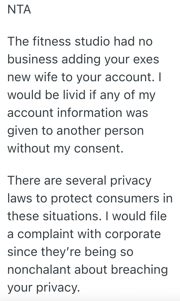 AITAH for getting mad about my gym letting my husband’s ex wife gain my account information?