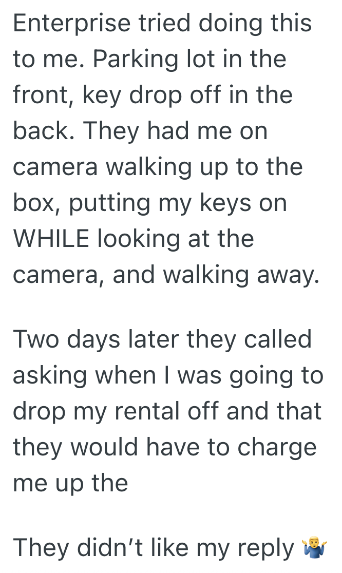 They demand the keys and I ask if I’m still getting charge for an extra day.