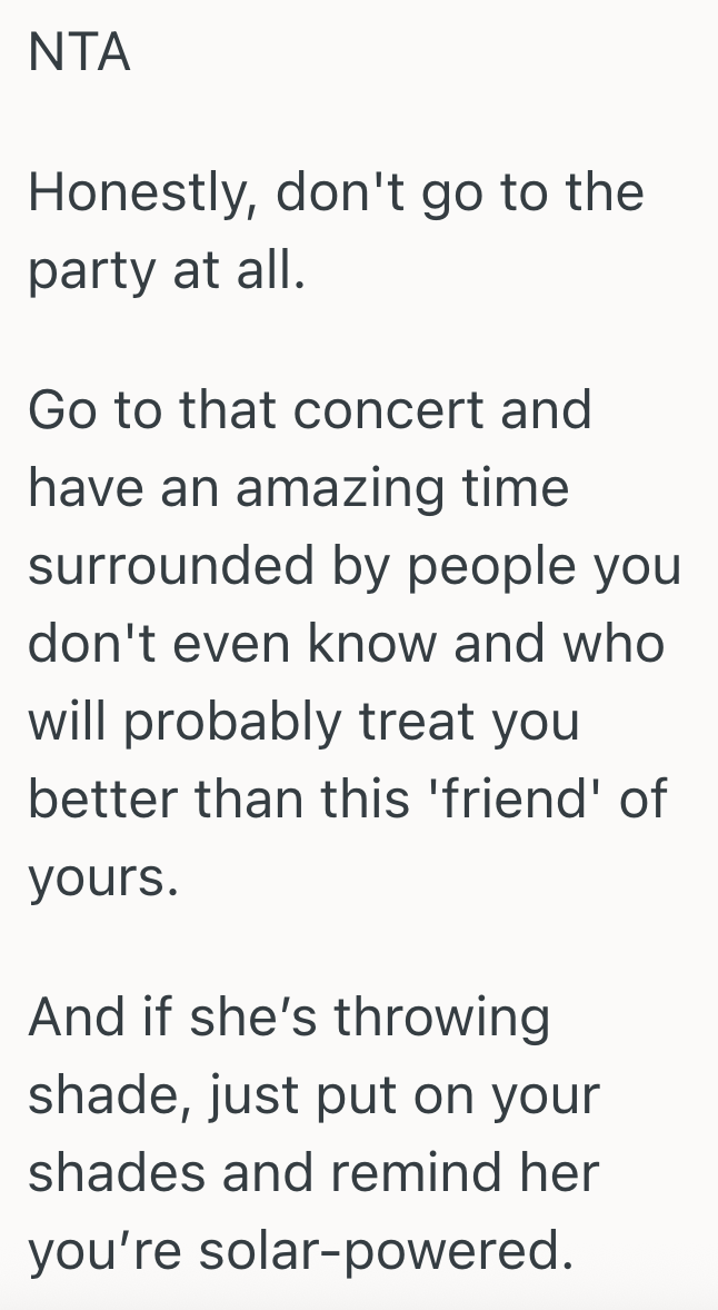 She Planned To Leave Her Friend’s Birthday Party Early So She Could Go To A Concert, But Now She’s Thinking About Not Going To Her Friend’s Party At All