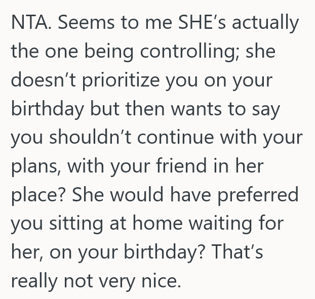 However, her friend wanted to hang out with her and had called her the night before my birthday.