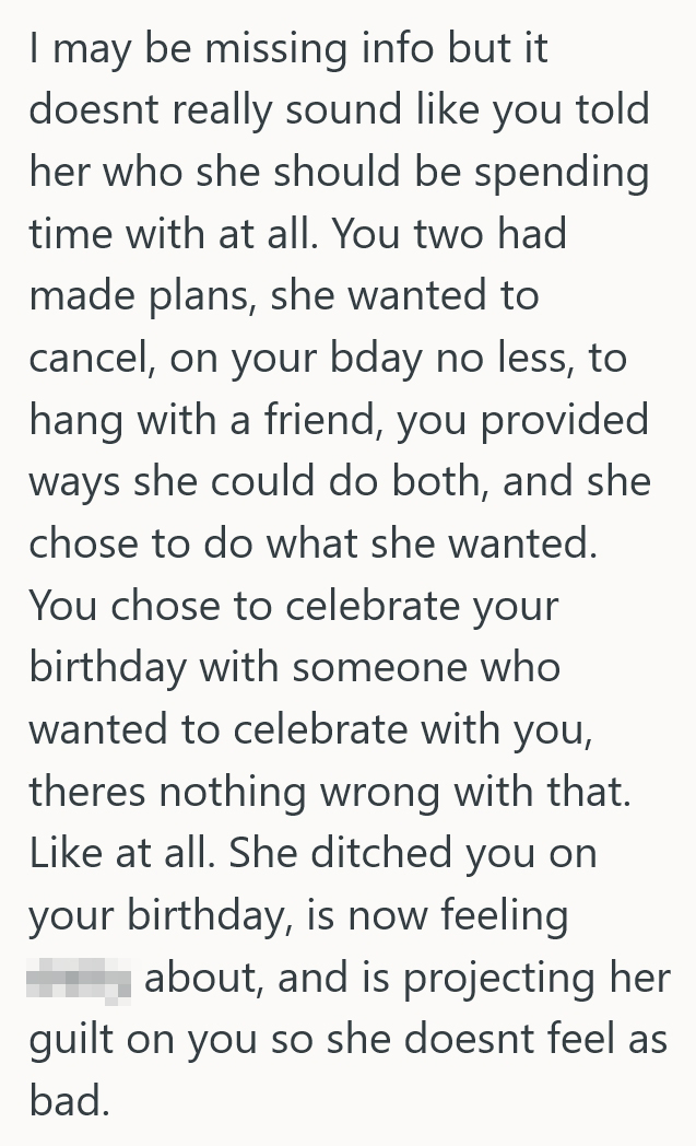 If I’m understanding this story right, your wife chose not to spend your birthday with you, then got mad that you spent it with a friend.