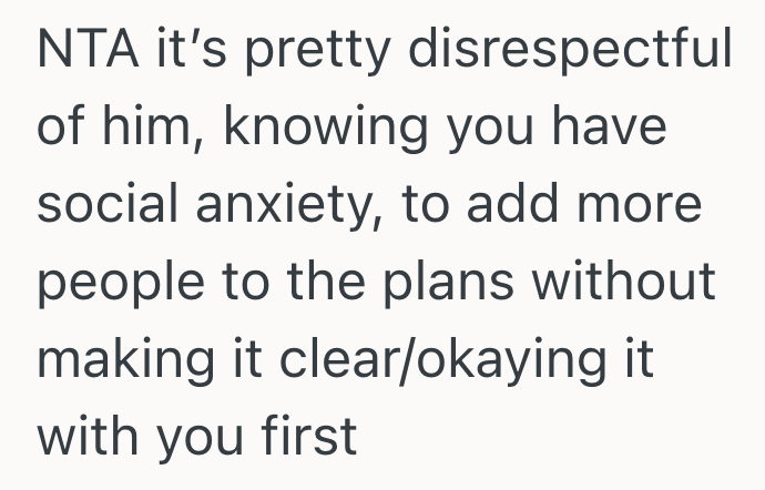 She may have changed her mind last minute, but he also told her his plans last minute and expected her to agree to them even though he knows she likes advance notice due to anxiety.