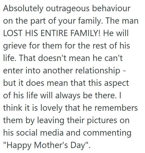 Just wondering if anyone else sees something wrong with what he’s posting? Am I too lenient?? Because I don’t think I am, and I would also love to hear perspectives from someone who had a partner that passed, as well as anyone who is in a current relationship with a widow/widower.