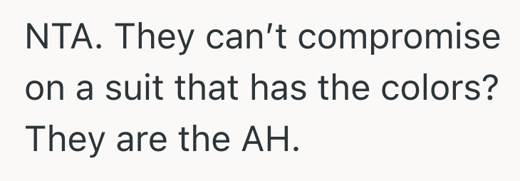 Apparently her future mother-in-law doesn’t like the idea of me being in the bridal party and wearing a suit.