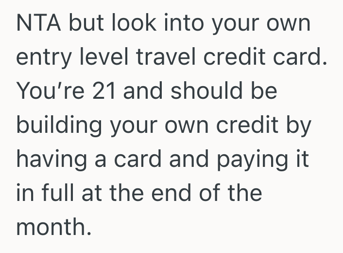 To top it off, she’s now saying I can’t use her travel credit card to book ((I always pay it back immediately, we just use it for points and free accommodation/flights for future trips).