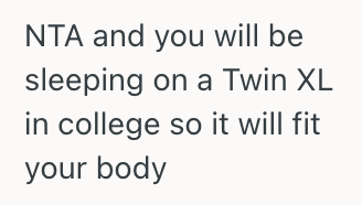 AITA for refusing to sleep on a twin bed which my (6 foot) legs hang off of?