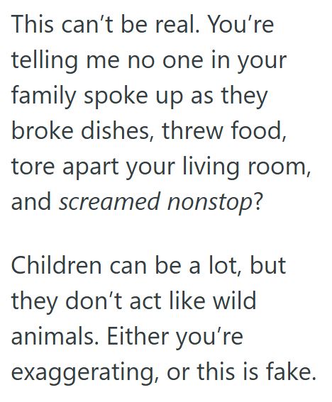 They tore apart our living room, threw food, spilled drinks, smeared fruit on our new rug, broke dishes, and screamed nonstop.