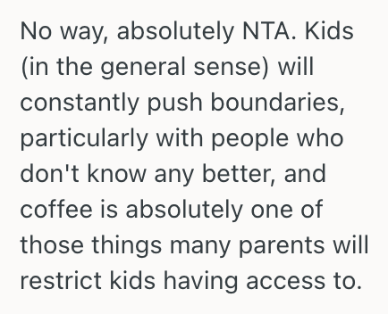 Most kids don’t drink coffee. It was right to verify this was okay.