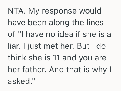 He said yes, before asking, “Did you think my daughter is a liar?”