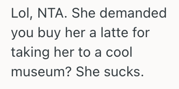 I ended up buying her oat milk latte before taking her on a tour.