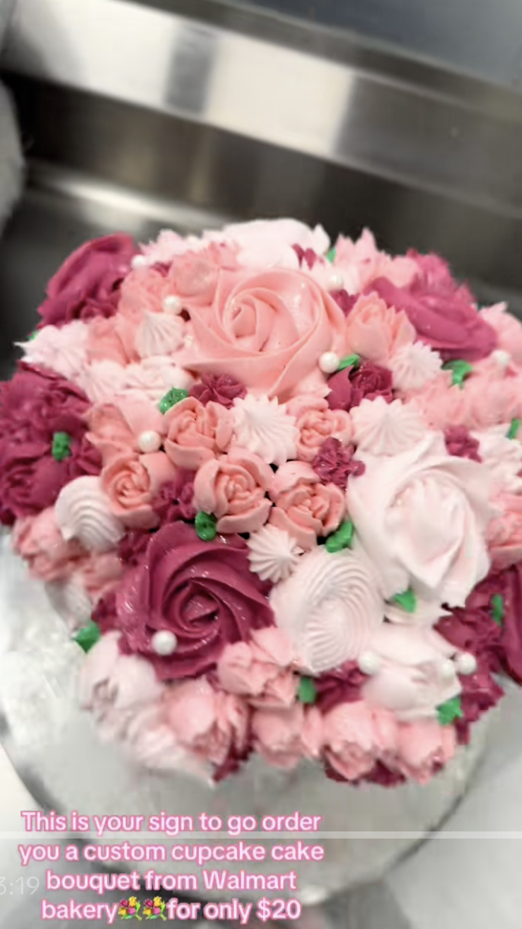 But usually cakes of this level of decor are far out of the budget range of most ordinary people. That’s why this $20 “cupcake bouquet” at Walmart is currently going viral.