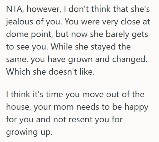 This user disagrees and thinks that the mom probably isn’t jealous.