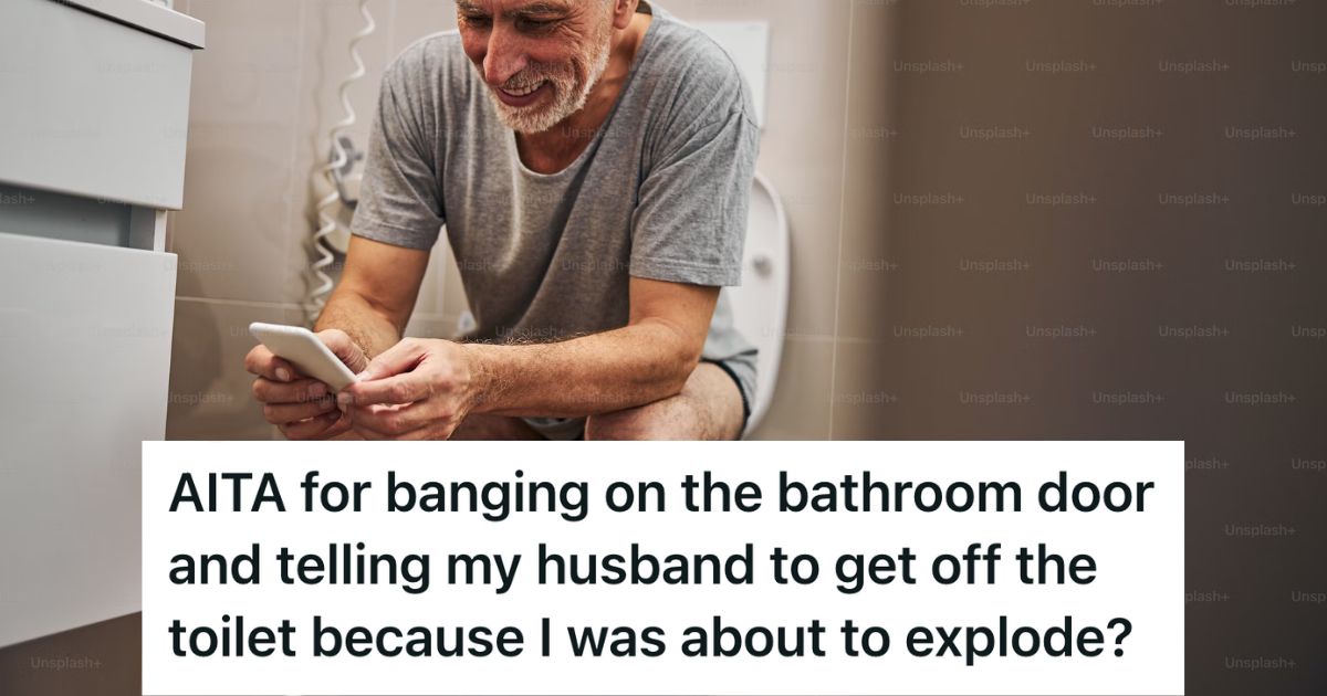 AITA for banging on the bathroom door and telling my husband to get off the toilet because I was about to explode?