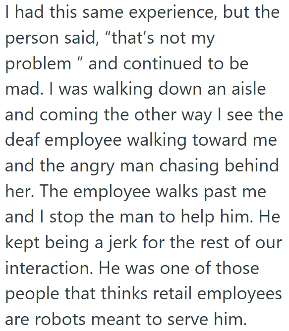 In this case, a woman assumed the cashier was ignoring her (for some reason) and asked to talk to the manager.