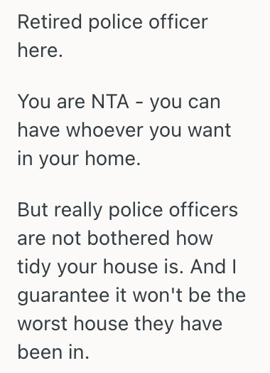 I don’t have a problem with him always giving police officers camera footage when requested, but I do have a problem with people coming into our house unexpectedly when I haven’t had a chance to tidy it up.