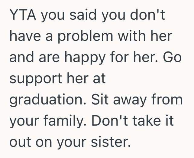 If you had a family like this, would you skip going to your sister’s graduation ceremony to avoid your family even if you get along with this one particular sister?