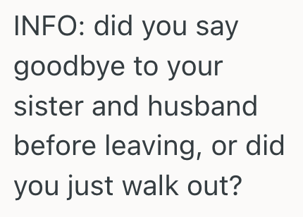 Eventually, my sister and husband came out and basically ganged up on me, saying I was being disrespectful, that we never get to go out like this because of our kid, and that I could’ve waited just 30 more minutes since the club was about to close.