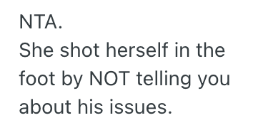 And she only said that he is severely autistic and has behavior issues, but she “didn’t want me to be scared off.”