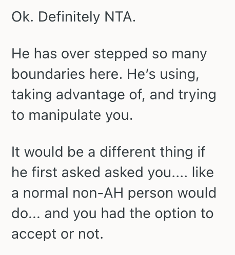 He said he couldn’t afford one and that I’m putting him in a bind.