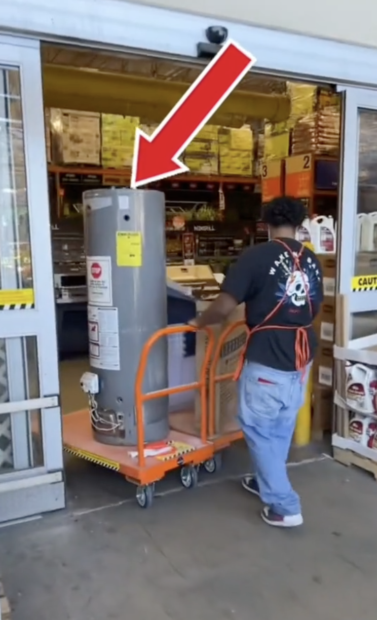 The video then showed two water heaters on carts in a Home Depot store and he said, “Uh oh, we got two Rheem returns.”