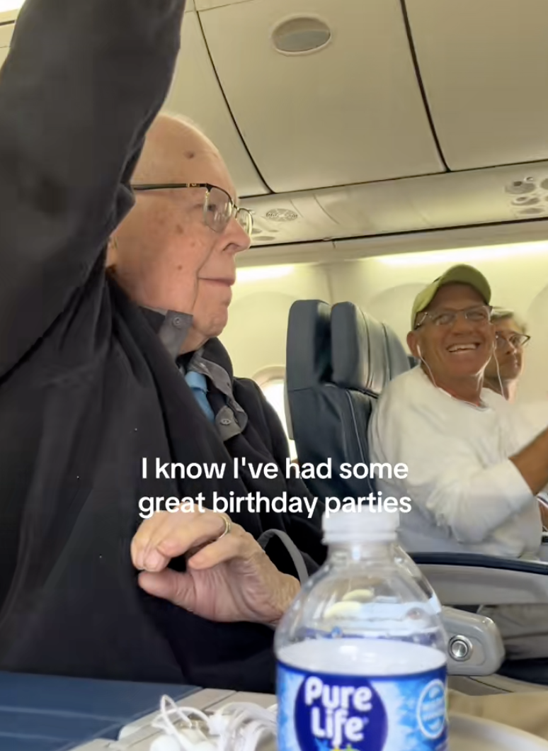 A woman named Kaitsy posted a video on TikTok and shared the heartwarming moment that she shared with her 100-year-old grandfather on a plane.
