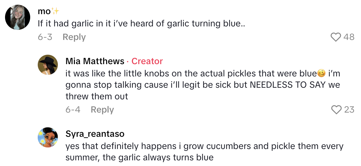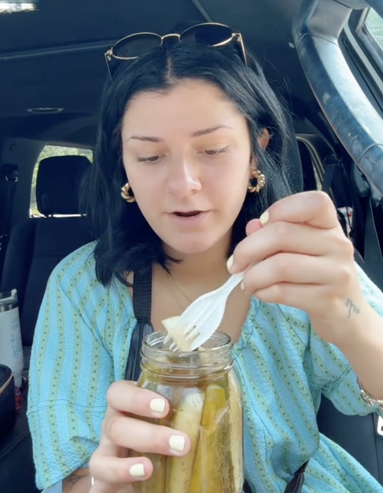 A TikTokker named Mia posted a video on the social media platform and talked about the gross, unexpected surprise she got from a jar of pickles.
