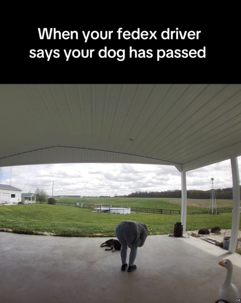 The delivery driver continued, “He’s laying here right now, but I don’t think he’s here anymore.”