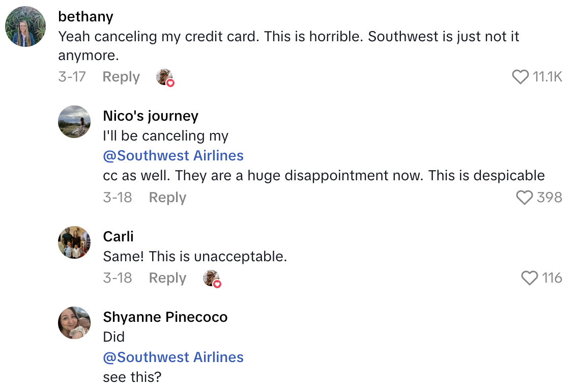 Maddy told viewers that she’s been happy with Southwest until a recent trip where she had a layover in Tampa because her flight was canceled because of bad weather. She was then rebooked on a flight to Baltimore.