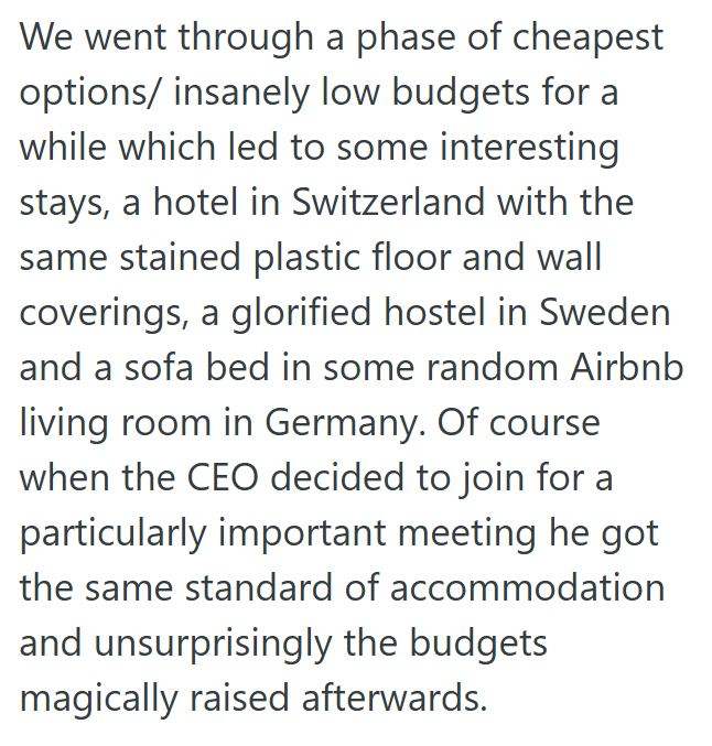 Tags: · car rental, cheap flights, cost cutting, flying, hotel rooms, malicious compliance, managers, money savings, picture, reddit, top