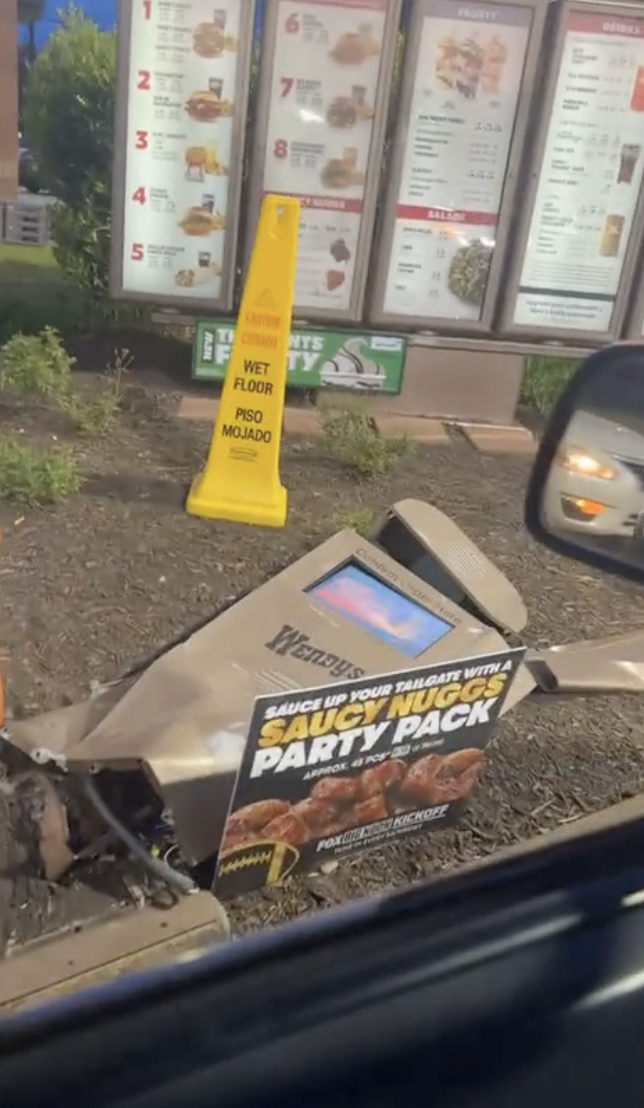 The video then showed the drive-thru speaker on the ground, obviously the aftermath of some kind of collision.