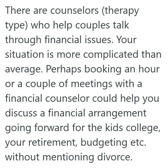 I went on and said, hey we can get divorced. In 2 years, you’d qualify for student aid for our daughter under FASFA based on her income.