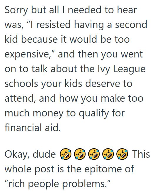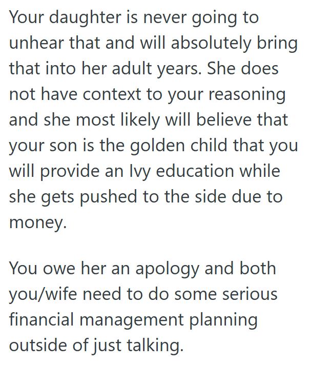 I can’t afford to send two kids to Ivy. I could send both to state schools. If I had to, we could do it. I can liquidate some investments.
