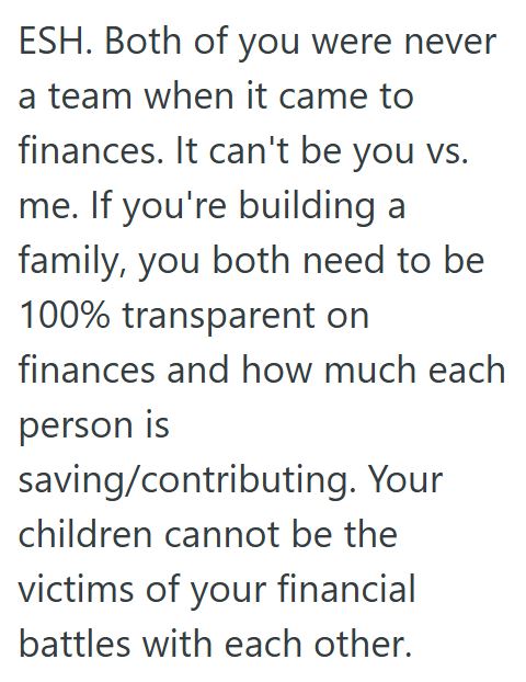Honestly, they really need to get on the same page with finances. It’s not like the wife doesn’t have the means to help out, so she should be.