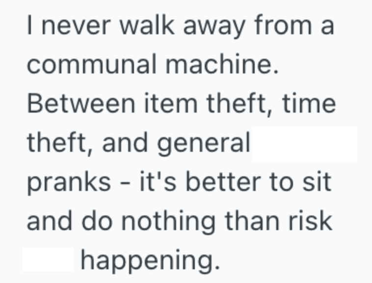 This young man moved his stuff to a different dryer and restarted the other guy’s timer.