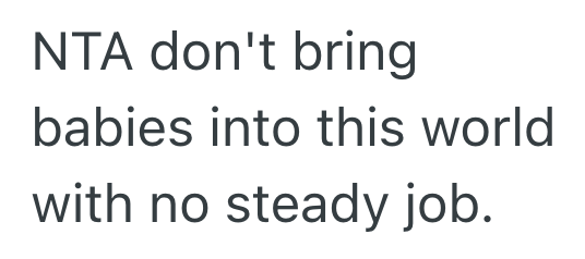 I told her that my point of view is simple. I’m not having a kid while I’m broke, sleep deprived, and still in school. I said that it is not a personal attack on her, and it’s just basic logic.