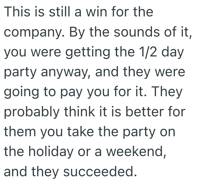 After back and forth meetings with the union, the company finally gave in and agreed to have only a half day of work on the 24th.