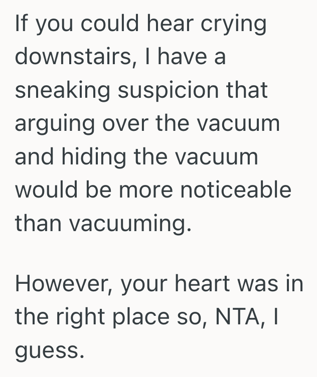 While the vacuuming may not be as big of a deal as he thinks, he’s still not in the wrong for having good intentions.