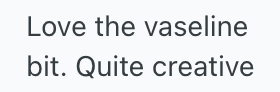 I went to work, took a tube of Vaseline (it’s not water soluble), and got some garbage from the break room.