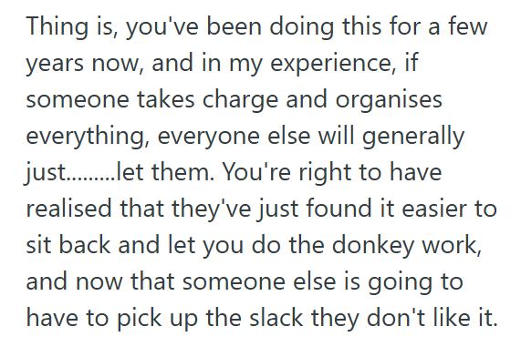 This year, I told them I’m out. I said I’m not planning anything, and if they want to go somewhere, someone else can take charge.